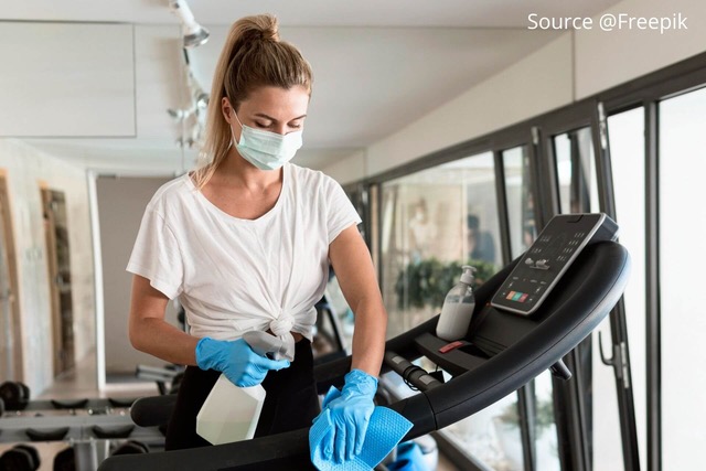 Equipment wipe-down and disinfection (cardio, free weights, machines)